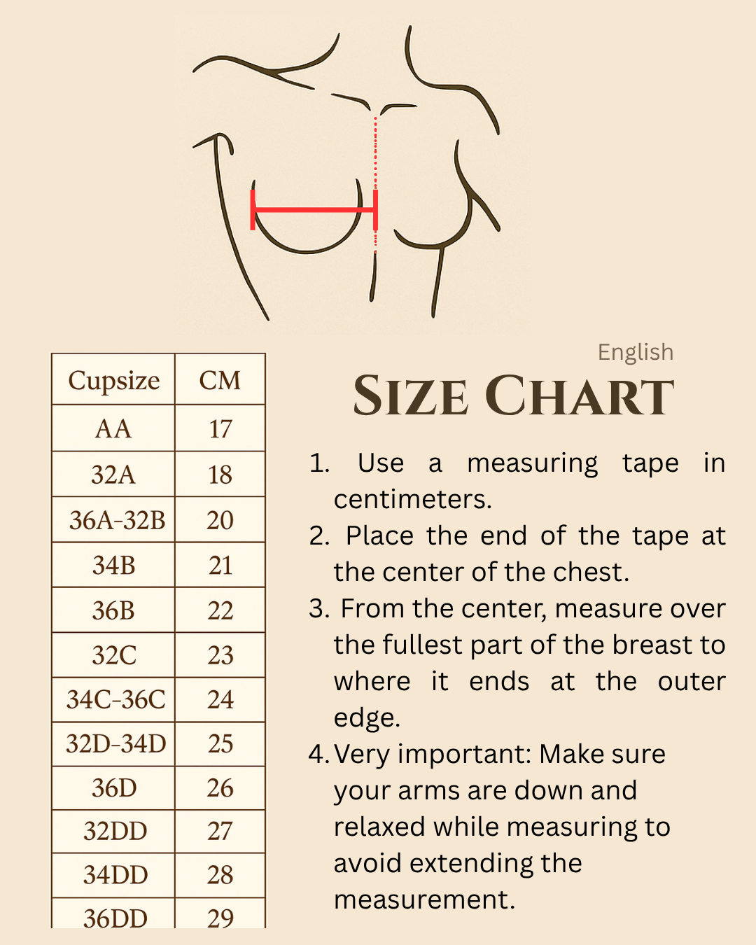 Trabajo desde copas AA hasta DD, y también puedo elaborar la pieza a la medida exacta del cliente para asegurar un ajuste perfecto. Si no está segura de su talla de copa, le invito a enviarme un mensaje directo a @hilosdorado_, donde le proporcionaré un tutorial detallado para tomar sus medidas con precisión.